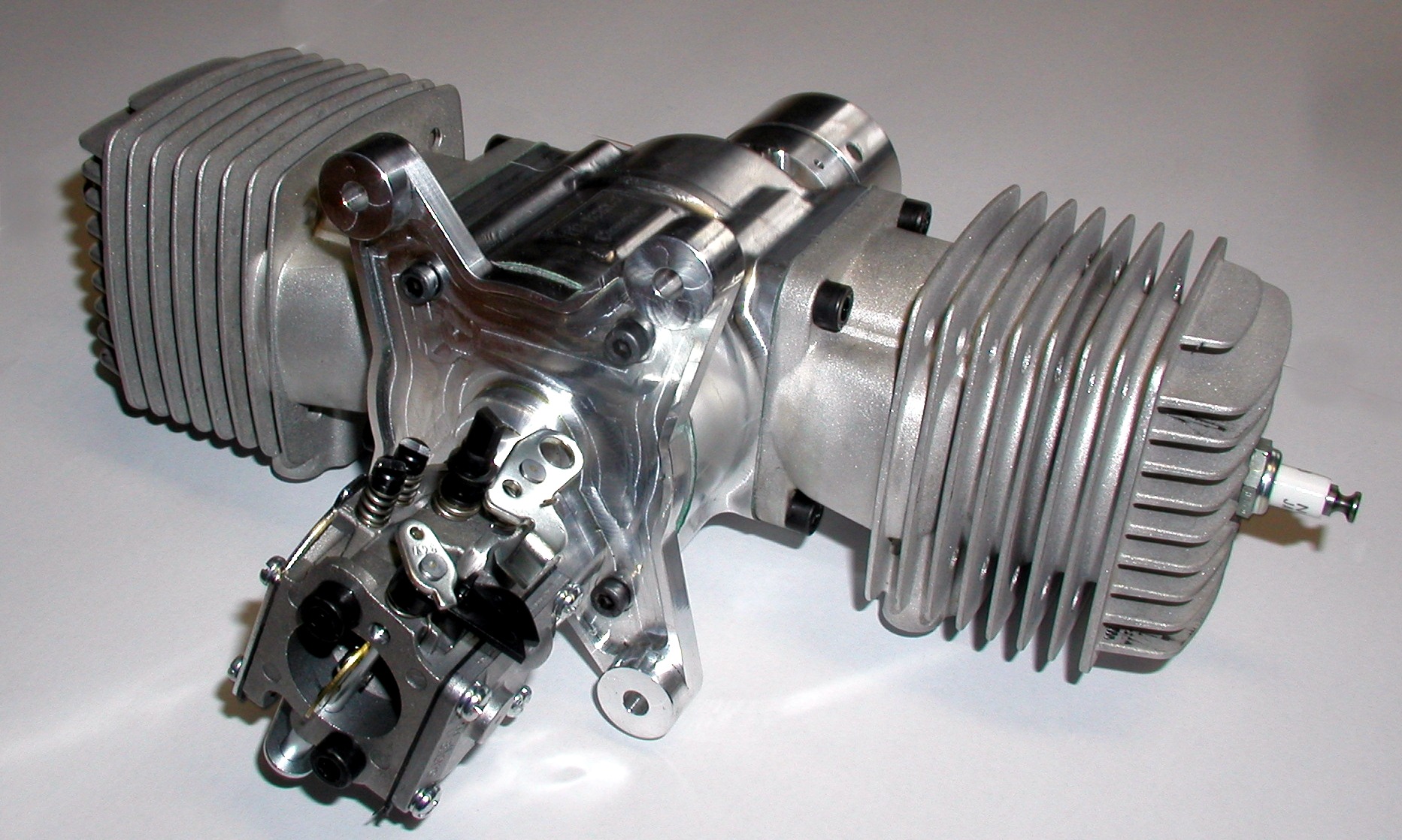 Already well known for its smooth run and awesome power to weight ratio two stroke 112ccm opposed twincylinder model gas engine with procesor controlled ignition. Now fully CNC made crankcase and backplate out of 7075 aluminium alloy. Weight increased compared to former 112B2RV-J is only 50 grams.