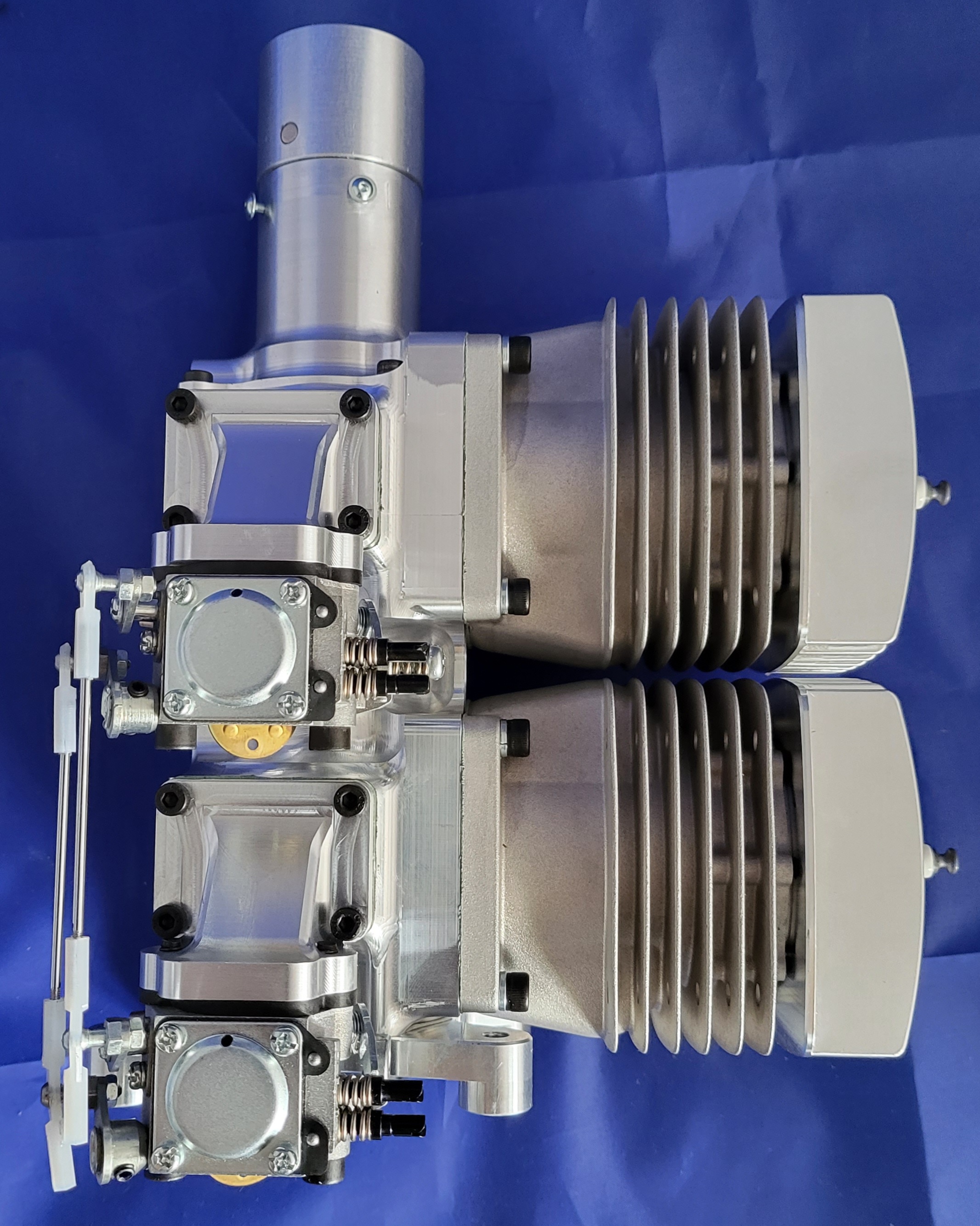 Already well known for its smooth run and awesome power to weight ratio two stroke 112ccm opposed twincylinder model gas engine with procesor controlled ignition. Now fully CNC made crankcase and backplate out of 7075 aluminium alloy so very clean design bringing better quality as well. Weight increased compared to former 112B2RV-J is only 50 grams.
