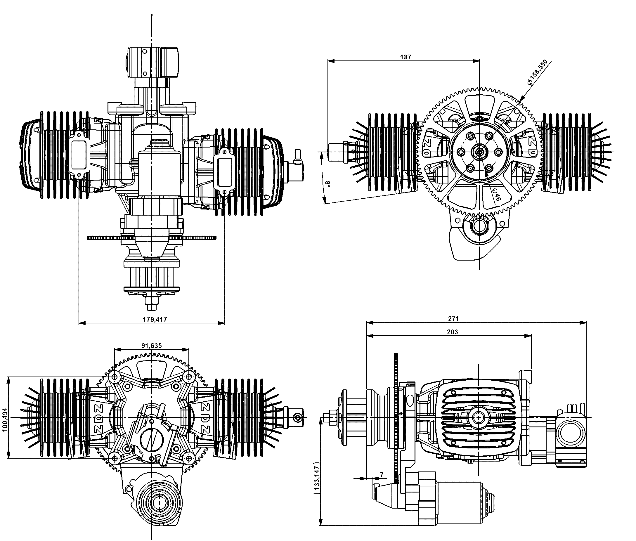 Already well known for its smooth run and awesome power to weight ratio two stroke 112ccm opposed twincylinder model gas engine with procesor controlled ignition. Now fully CNC made crankcase and backplate out of 7075 aluminium alloy so very clean design bringing better quality as well. Weight increased compared to former 112B2RV-J is only 50 grams.