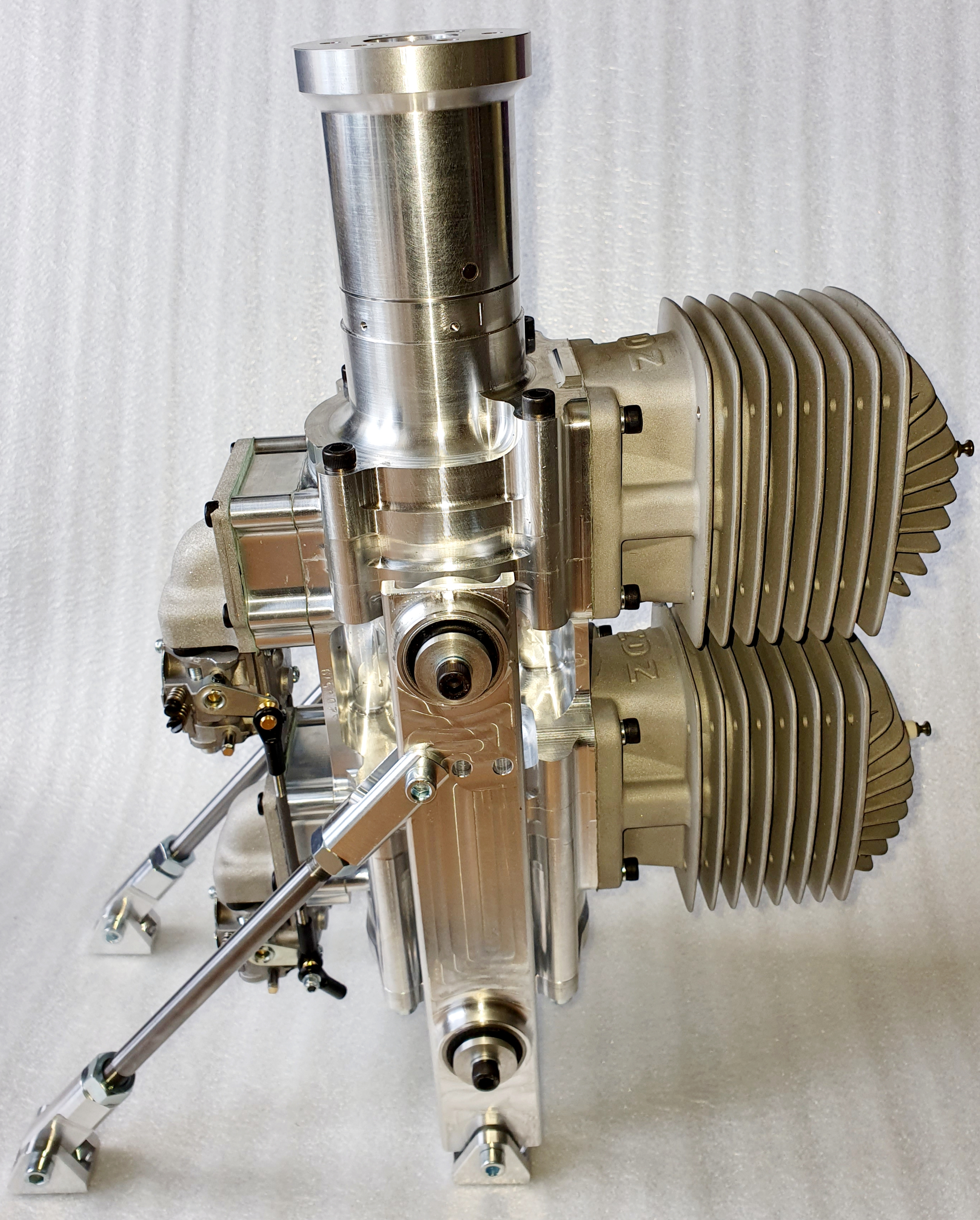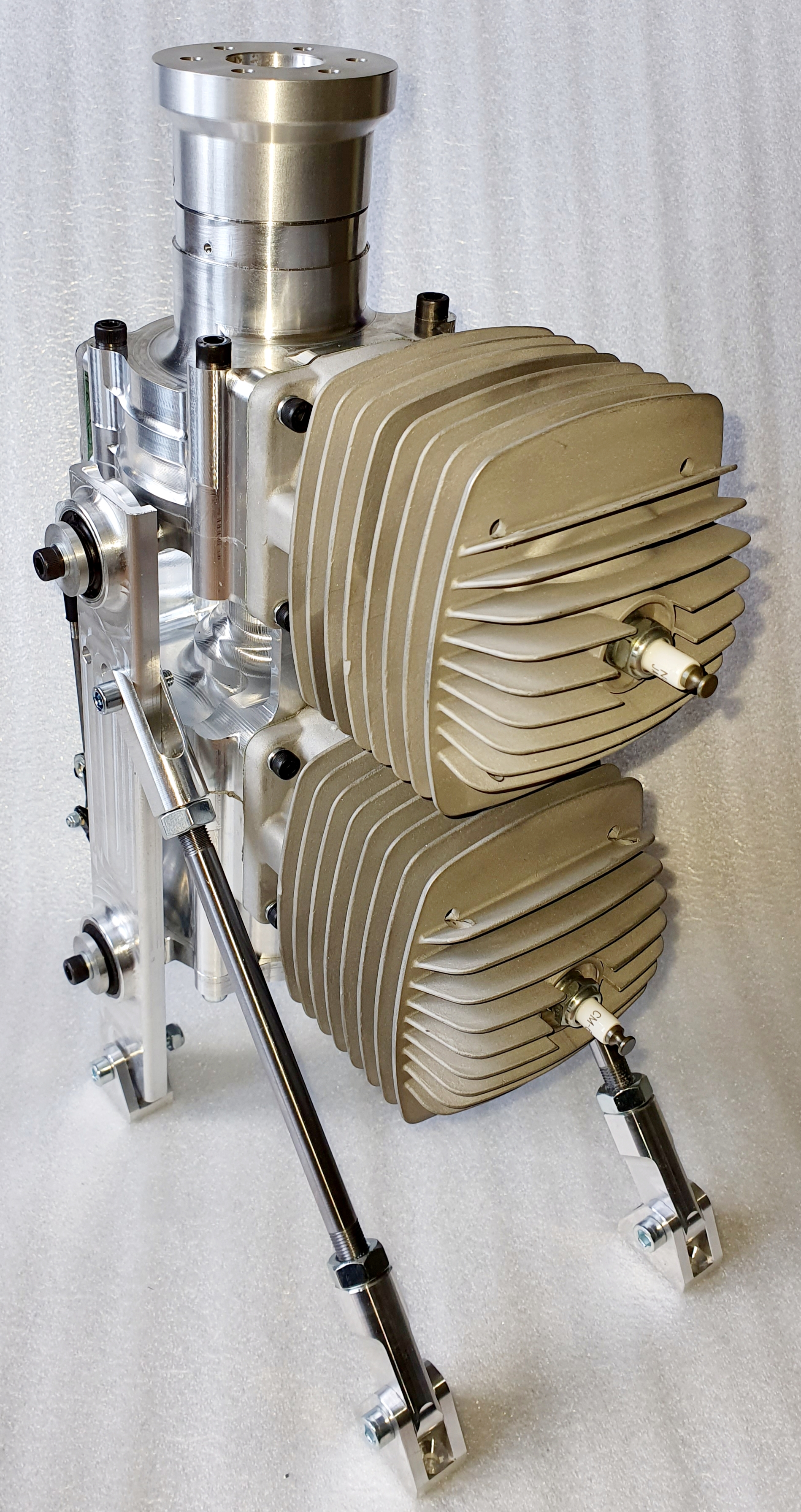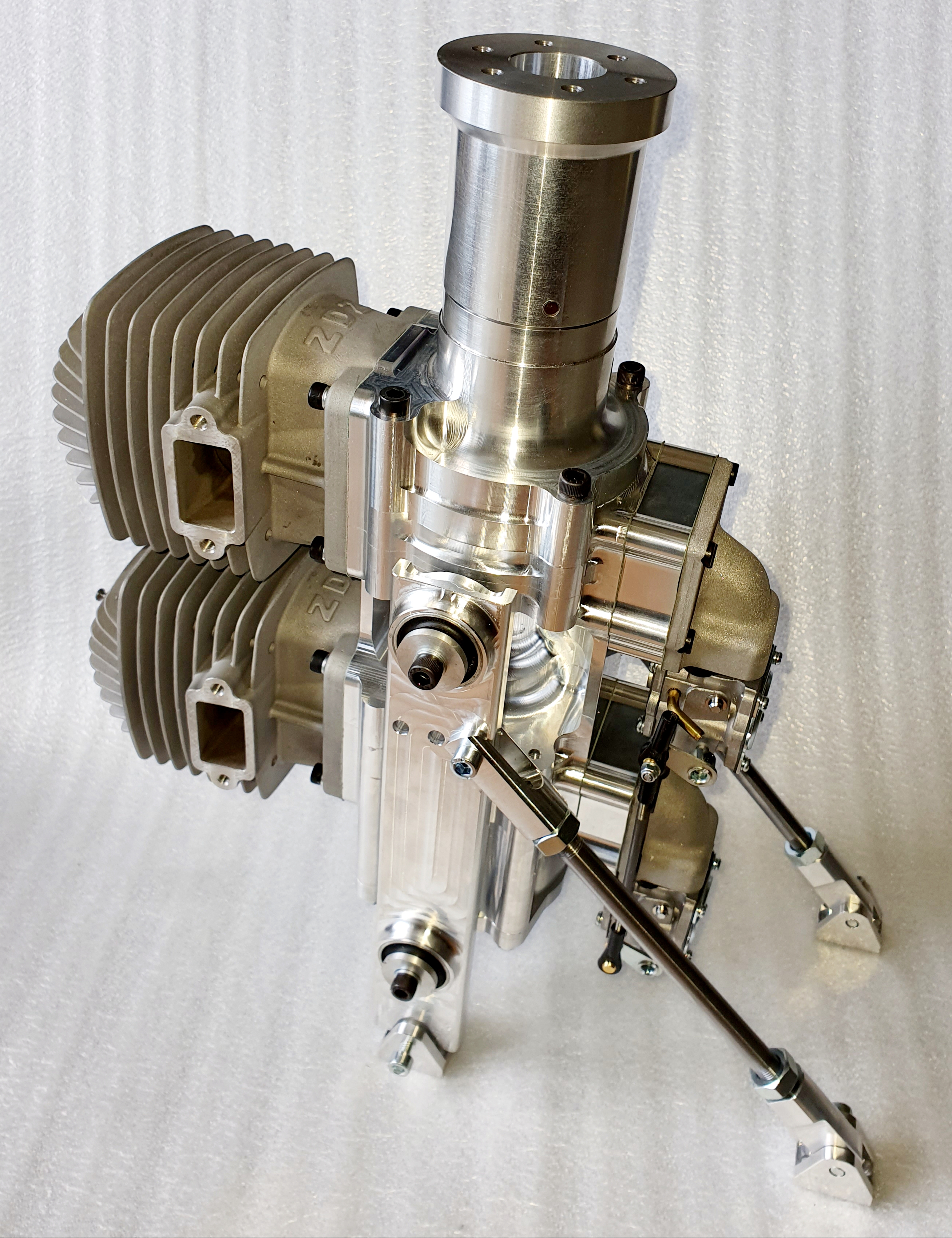 Already well known for its smooth run and awesome power to weight ratio two stroke 112ccm opposed twincylinder model gas engine with procesor controlled ignition. Now fully CNC made crankcase and backplate out of 7075 aluminium alloy so very clean design bringing better quality as well. Weight increased compared to former 112B2RV-J is only 50 grams.