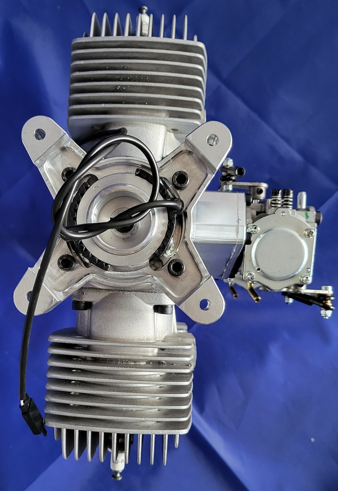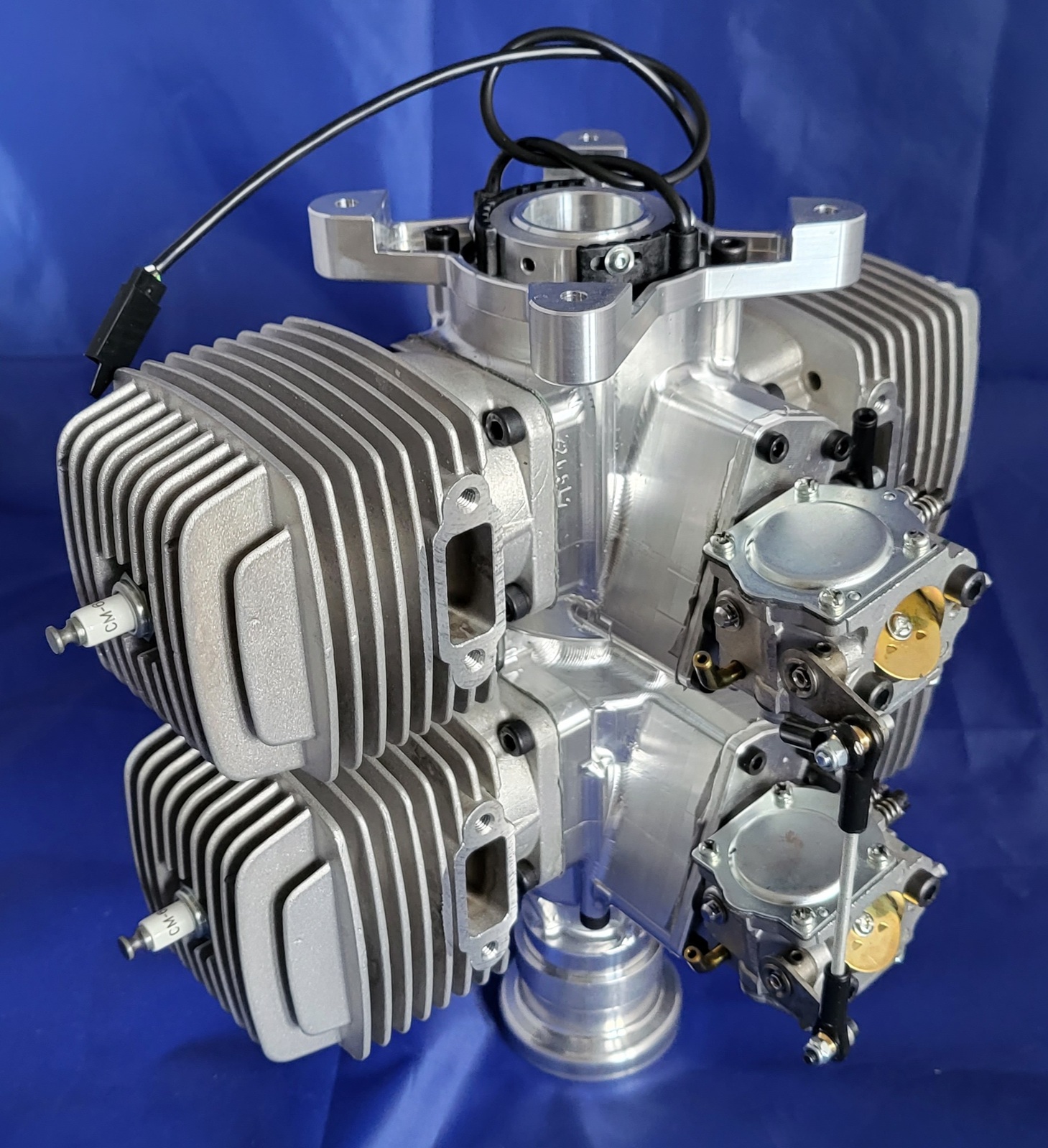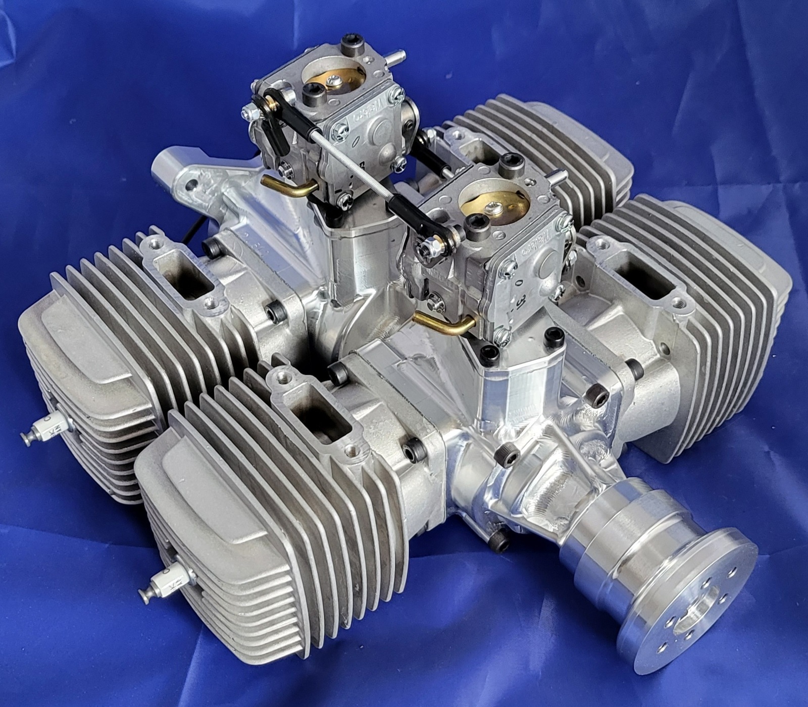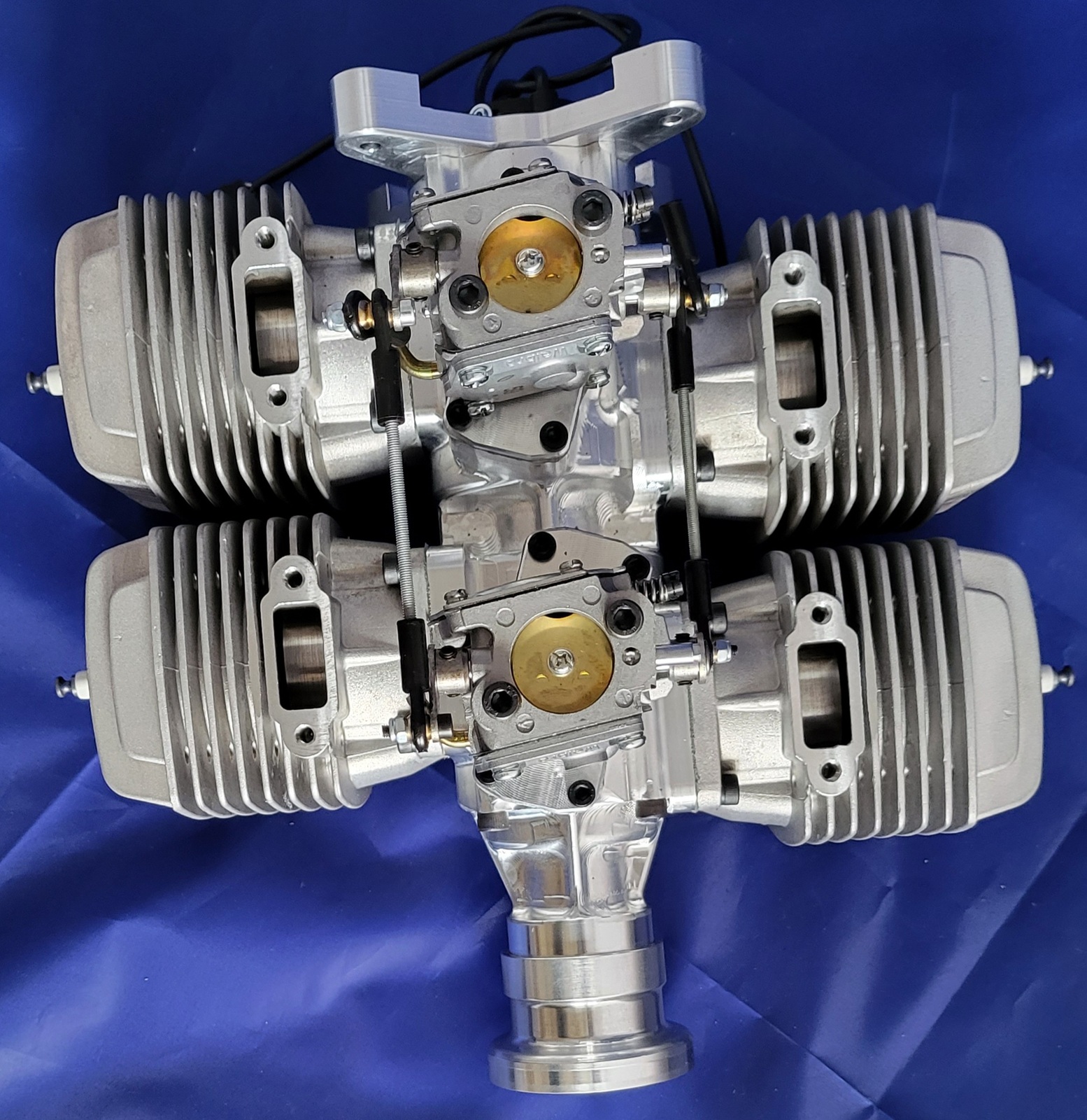 Already well known for its smooth run and awesome power to weight ratio two stroke 112ccm opposed twincylinder model gas engine with procesor controlled ignition. Now fully CNC made crankcase and backplate out of 7075 aluminium alloy so very clean design bringing better quality as well. Weight increased compared to former 112B2RV-J is only 50 grams.