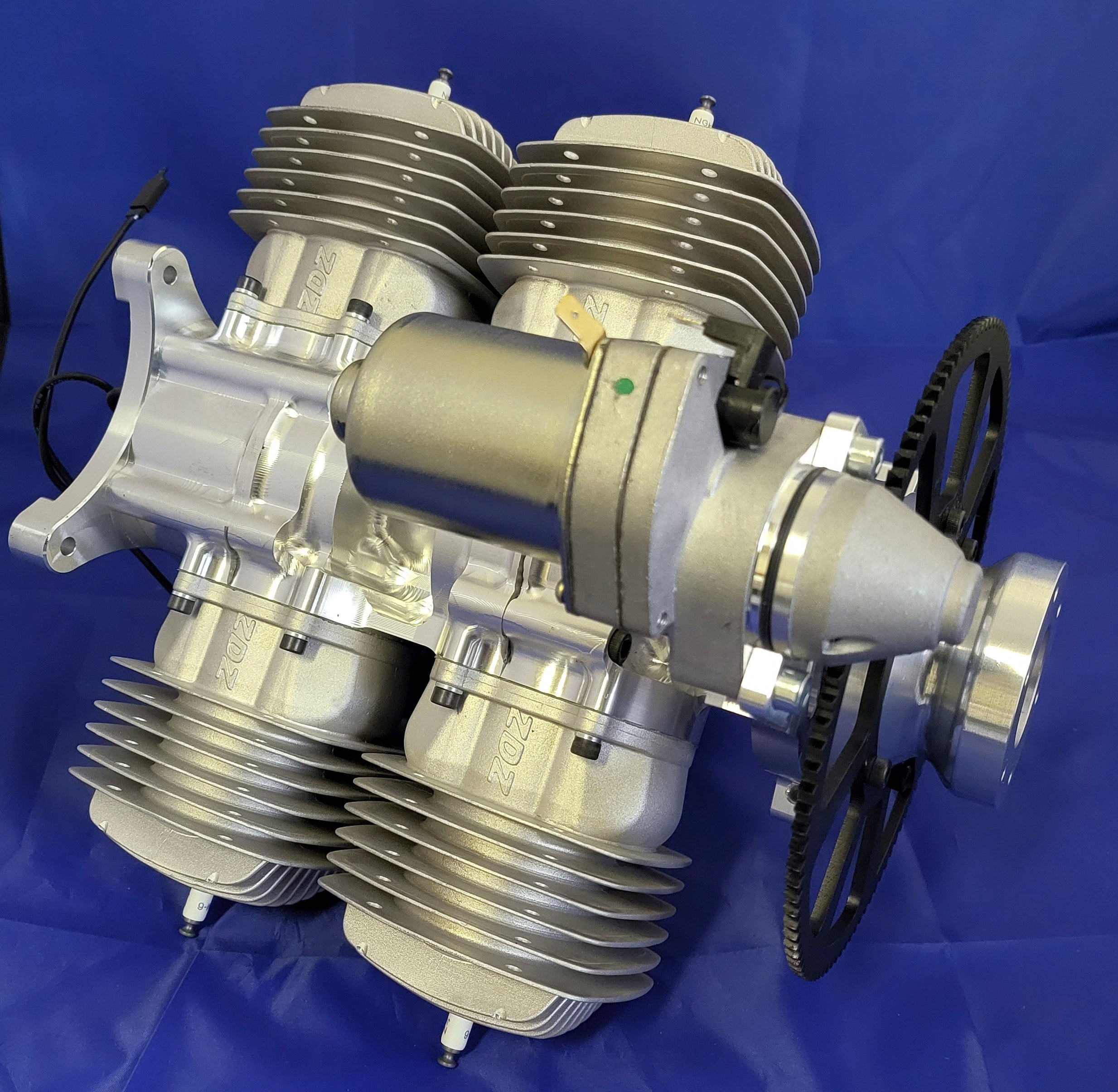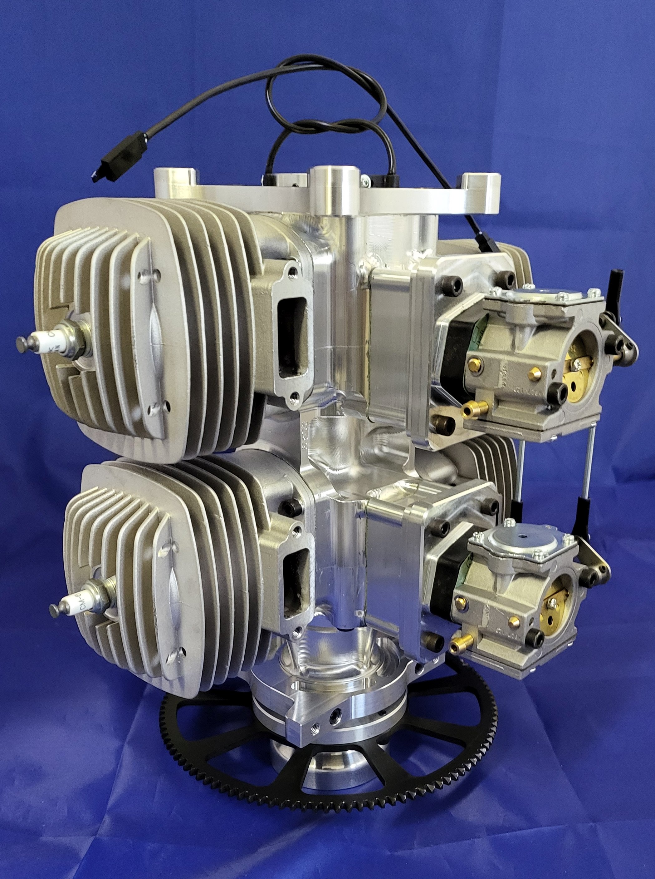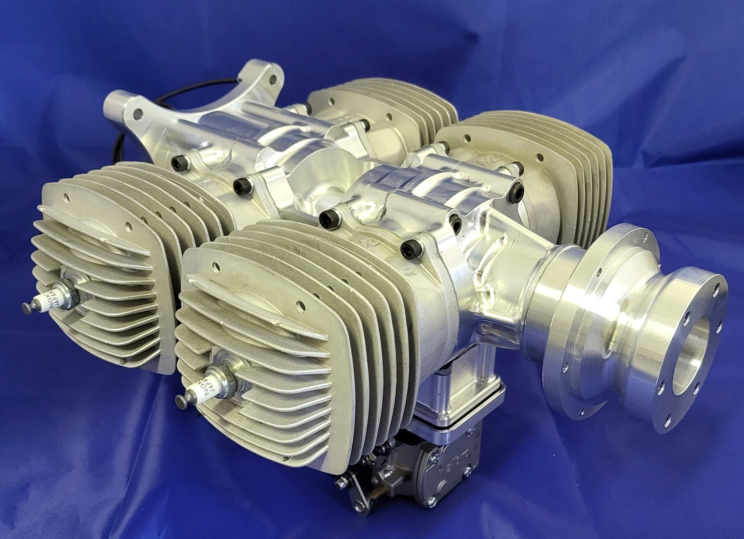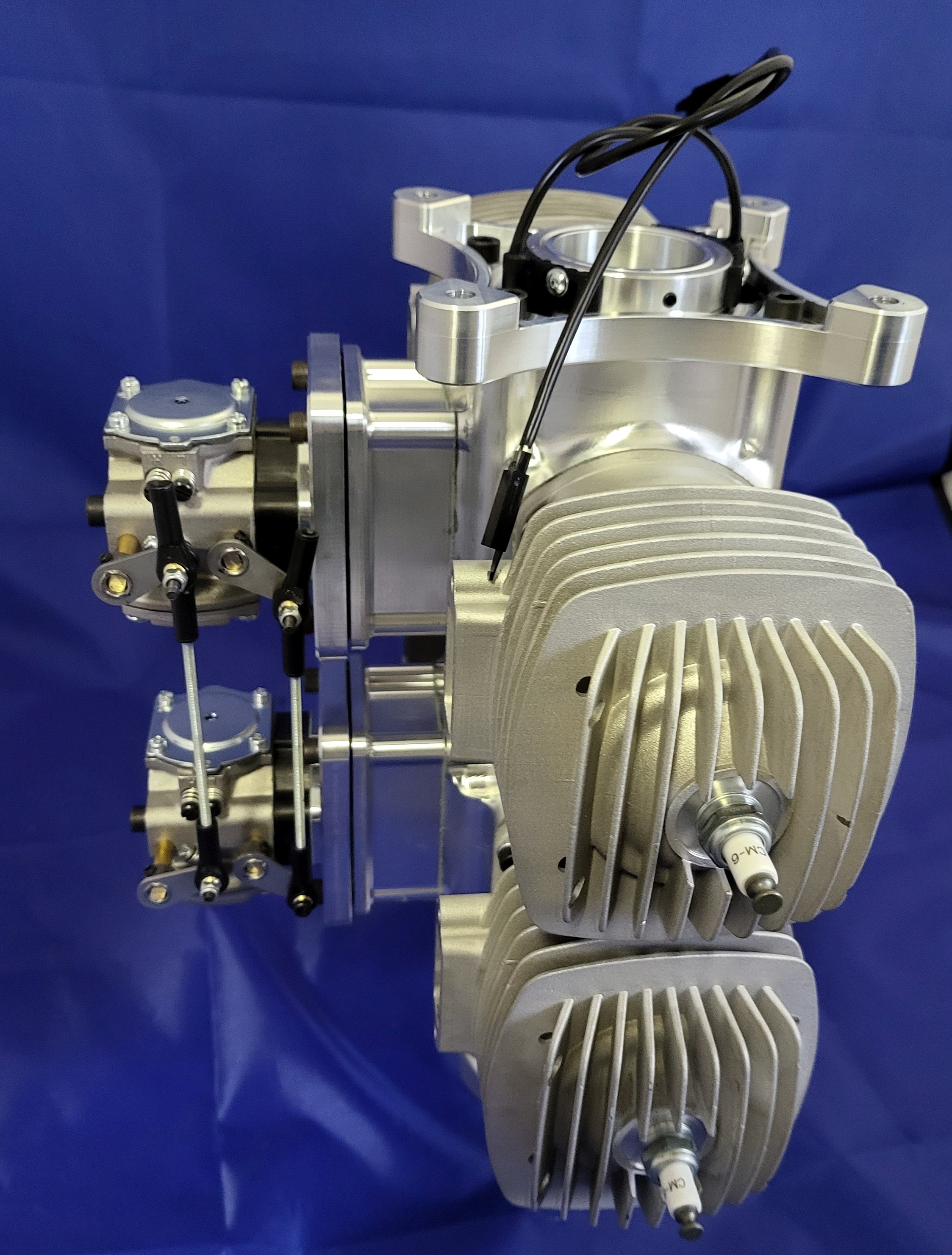 Already well known for its smooth run and awesome power to weight ratio two stroke 112ccm opposed twincylinder model gas engine with procesor controlled ignition. Now fully CNC made crankcase and backplate out of 7075 aluminium alloy so very clean design bringing better quality as well. Weight increased compared to former 112B2RV-J is only 50 grams.