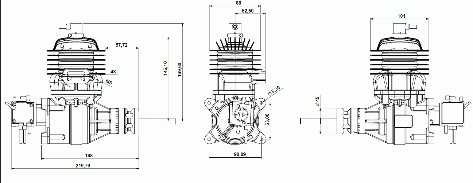 Already well known for its smooth run and awesome power to weight ratio two stroke 112ccm opposed twincylinder model gas engine with procesor controlled ignition. Now fully CNC made crankcase and backplate out of 7075 aluminium alloy so very clean design bringing better quality as well. Weight increased compared to former 112B2RV-J is only 50 grams.