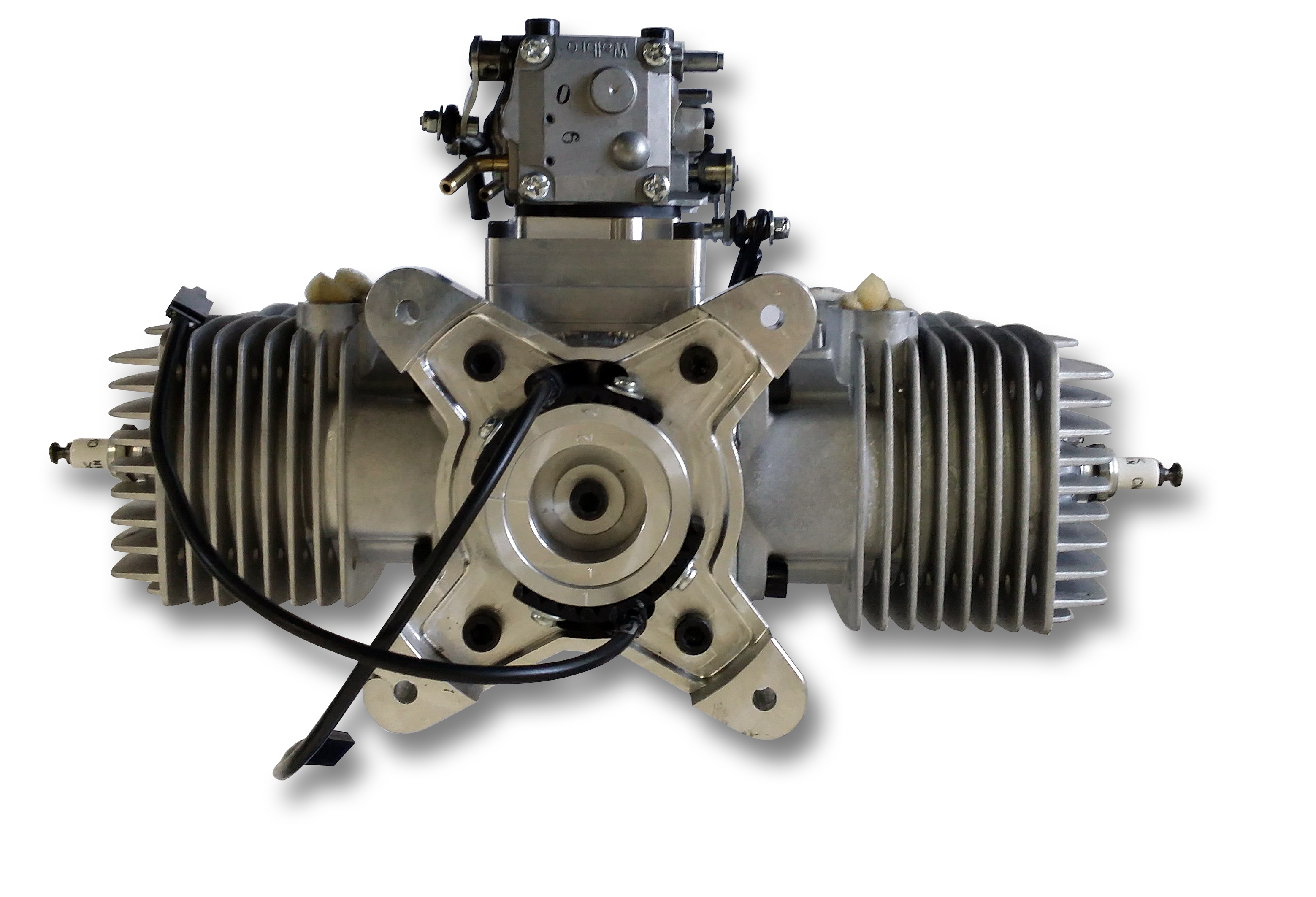Already well known for its smooth run and awesome power to weight ratio two stroke 112ccm opposed twincylinder model gas engine with procesor controlled ignition. Now fully CNC made crankcase and backplate out of 7075 aluminium alloy so very clean design bringing better quality as well. Weight increased compared to former 112B2RV-J is only 50 grams.