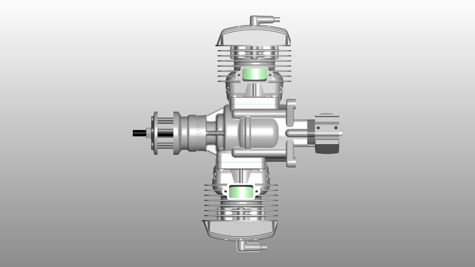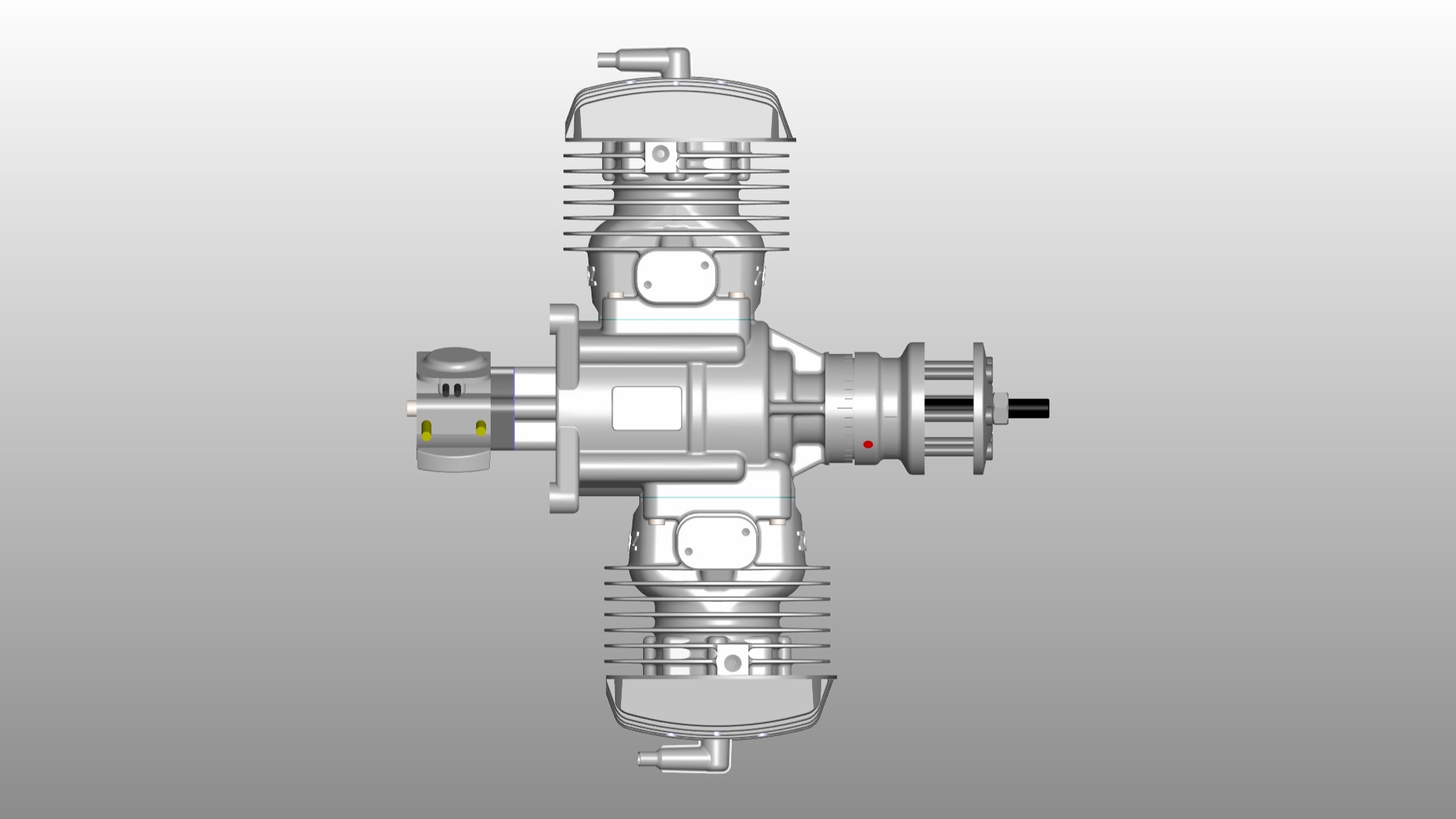 Already well known for its smooth run and awesome power to weight ratio two stroke 112ccm opposed twincylinder model gas engine with procesor controlled ignition. Now fully CNC made crankcase and backplate out of 7075 aluminium alloy so very clean design bringing better quality as well. Weight increased compared to former 112B2RV-J is only 50 grams.