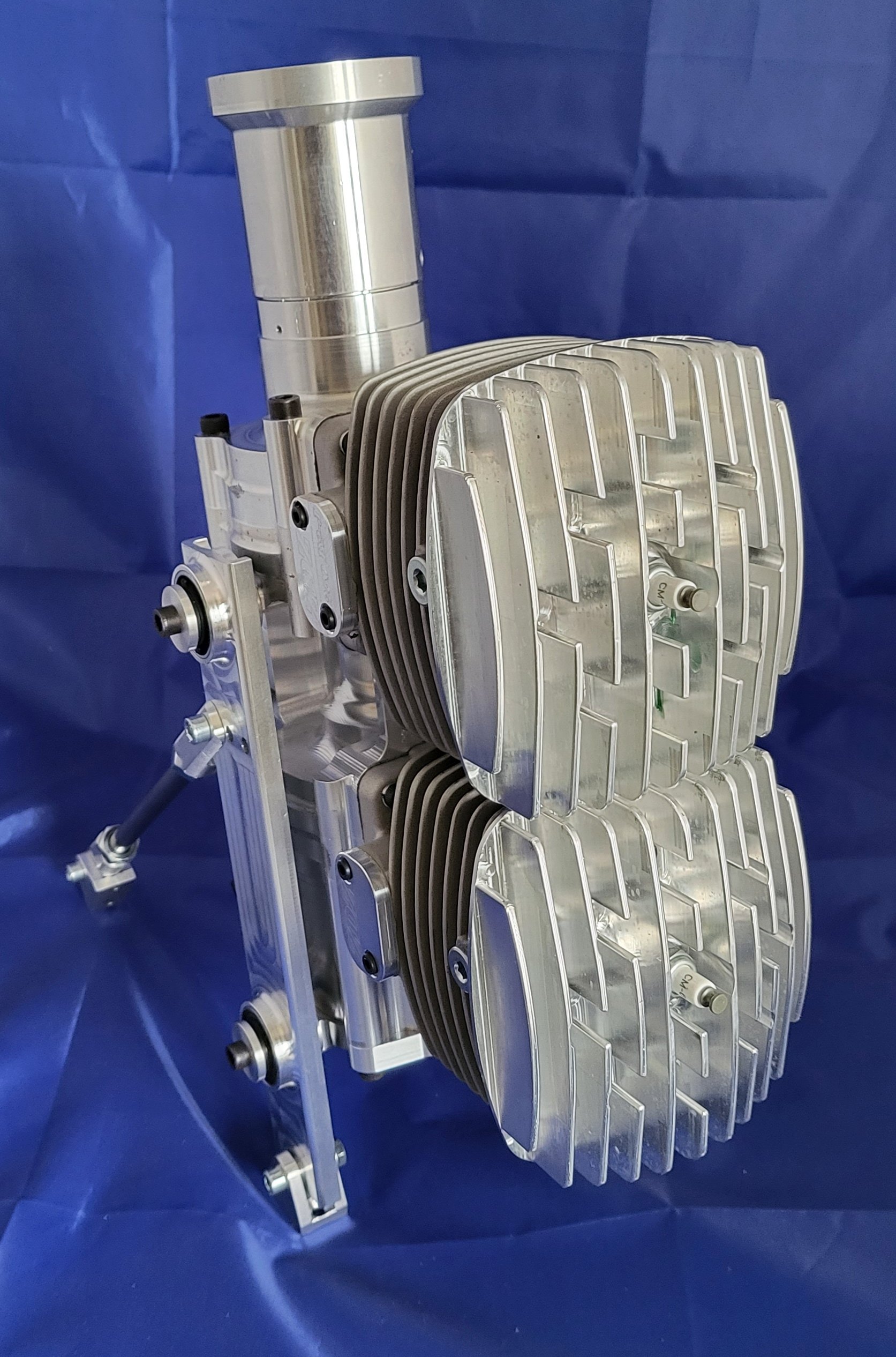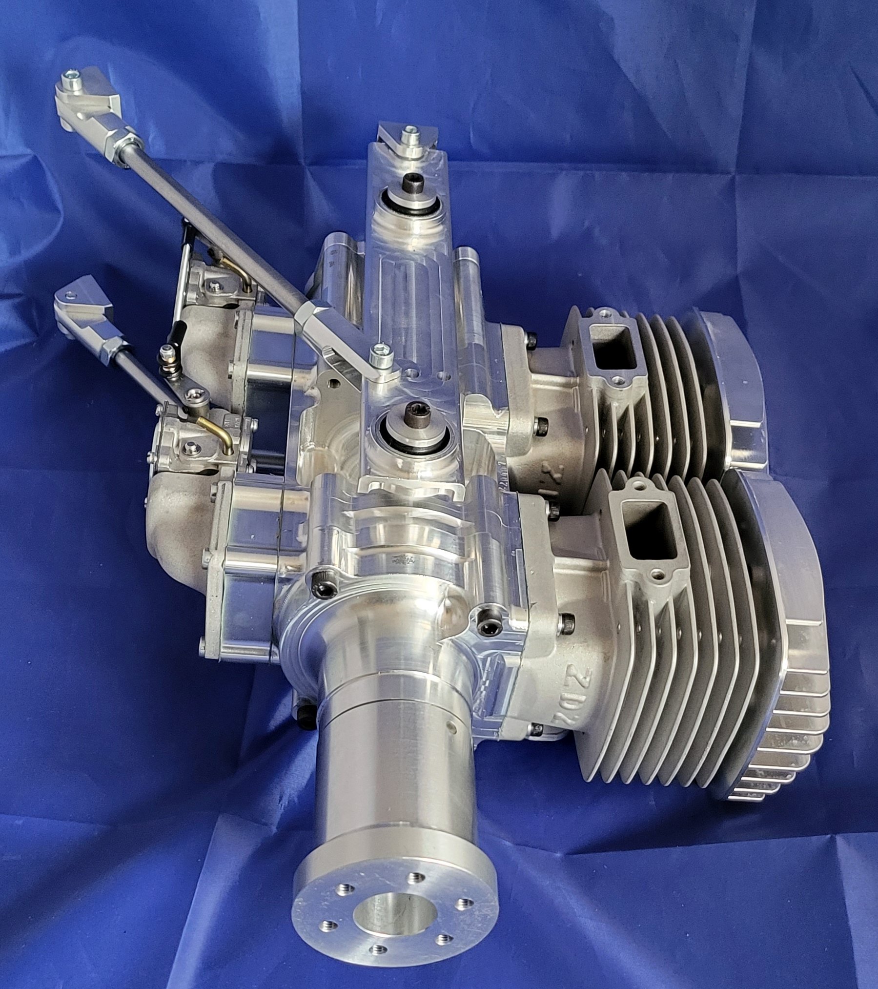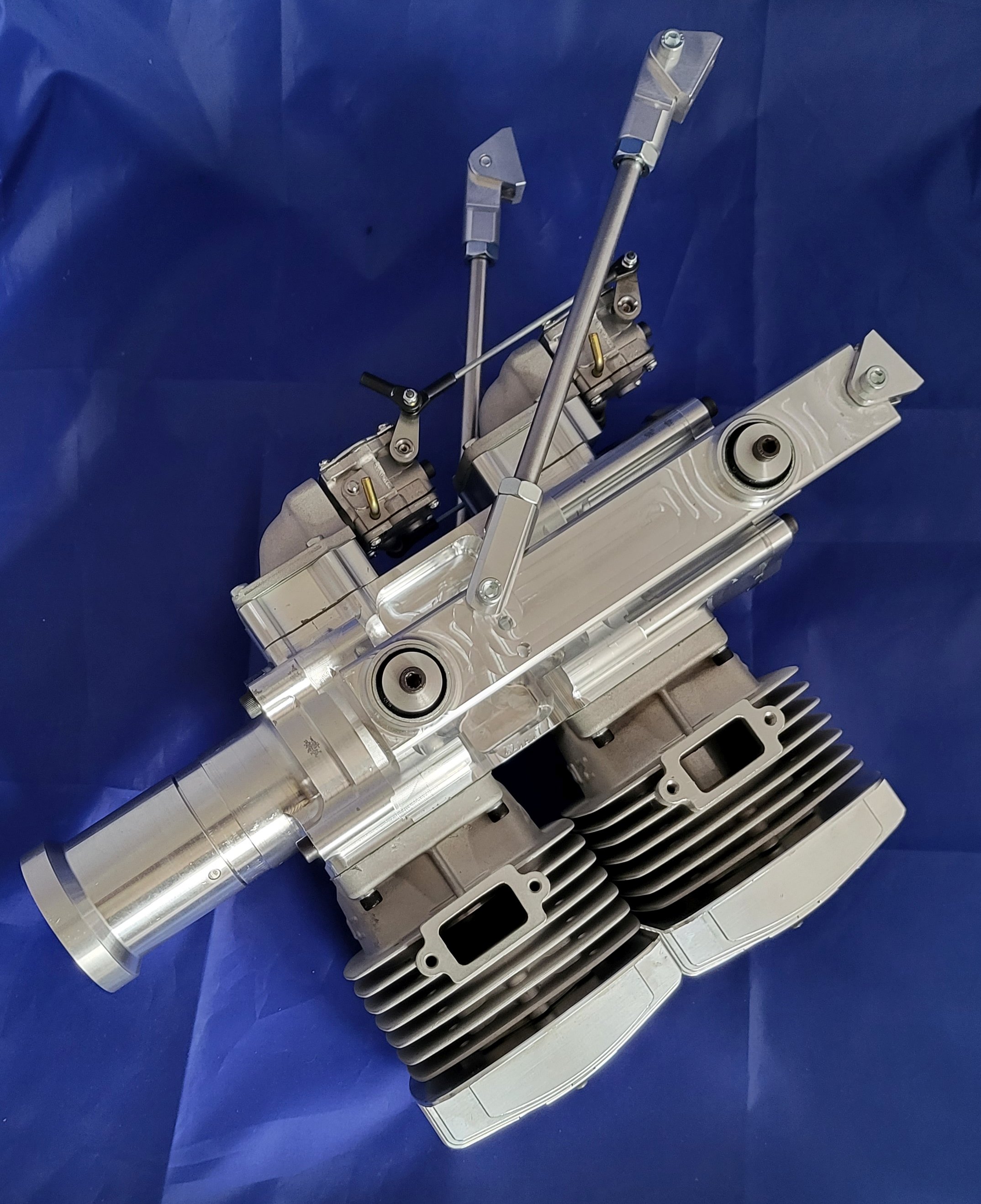 Already well known for its smooth run and awesome power to weight ratio two stroke 112ccm opposed twincylinder model gas engine with procesor controlled ignition. Now fully CNC made crankcase and backplate out of 7075 aluminium alloy so very clean design bringing better quality as well. Weight increased compared to former 112B2RV-J is only 50 grams.