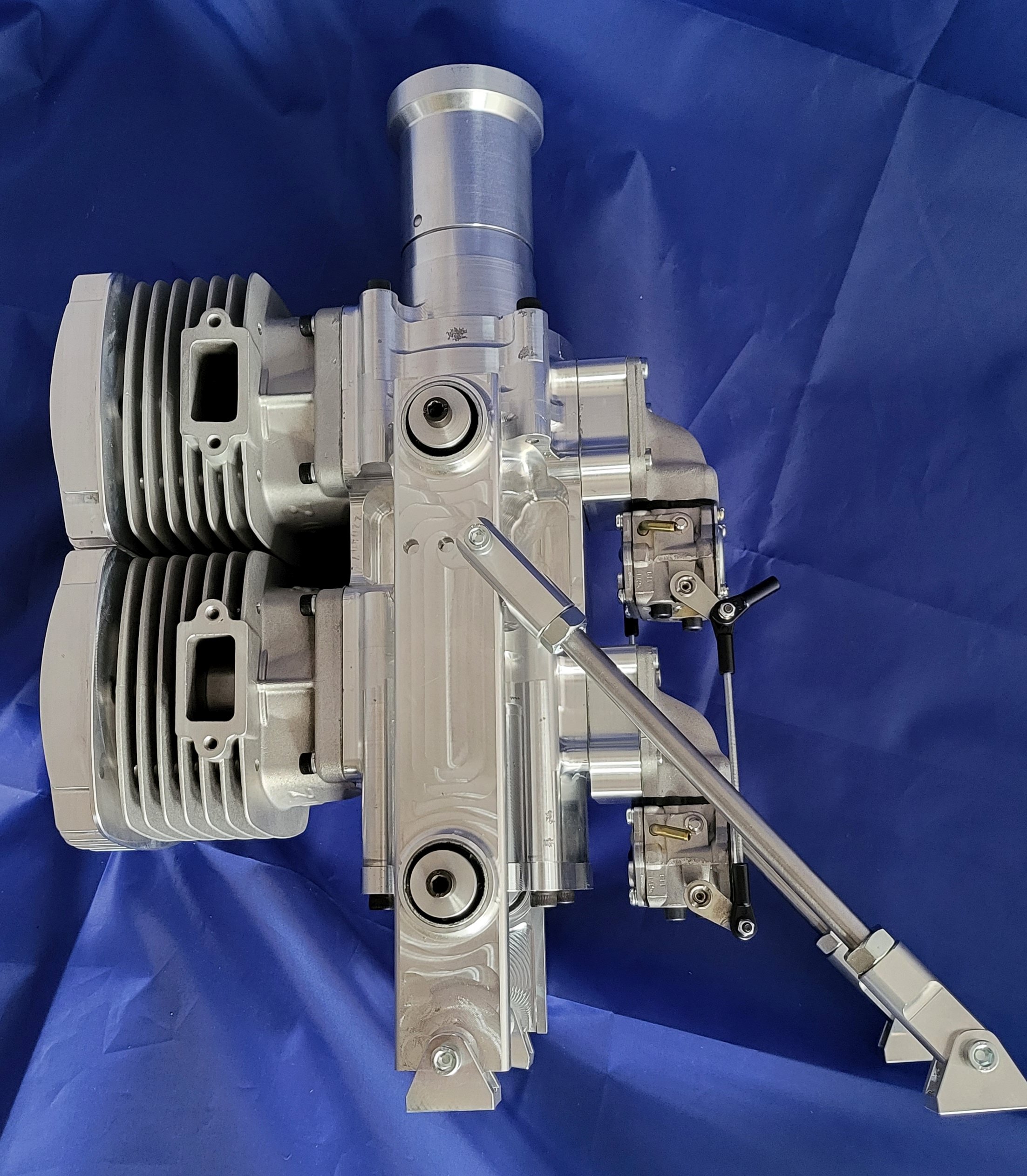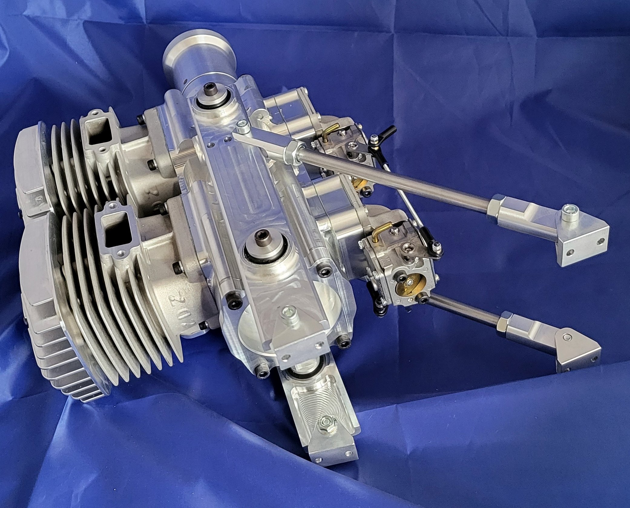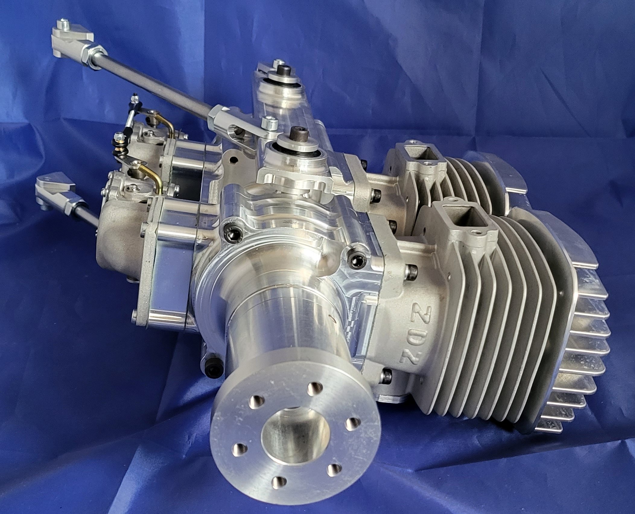 Already well known for its smooth run and awesome power to weight ratio two stroke 112ccm opposed twincylinder model gas engine with procesor controlled ignition. Now fully CNC made crankcase and backplate out of 7075 aluminium alloy so very clean design bringing better quality as well. Weight increased compared to former 112B2RV-J is only 50 grams.