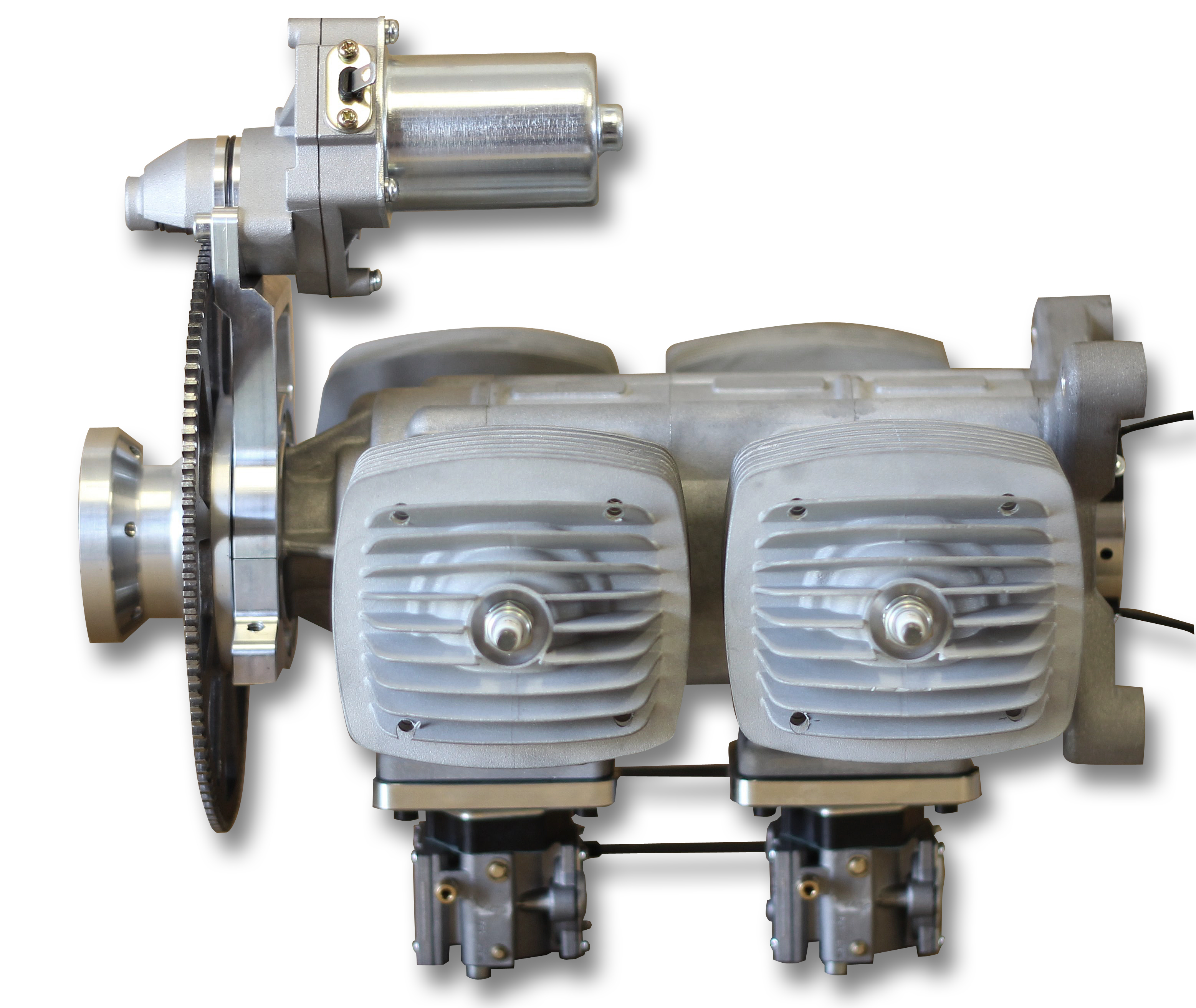 Already well known for its smooth run and awesome power to weight ratio two stroke 112ccm opposed twincylinder model gas engine with procesor controlled ignition. Now fully CNC made crankcase and backplate out of 7075 aluminium alloy so very clean design bringing better quality as well. Weight increased compared to former 112B2RV-J is only 50 grams.