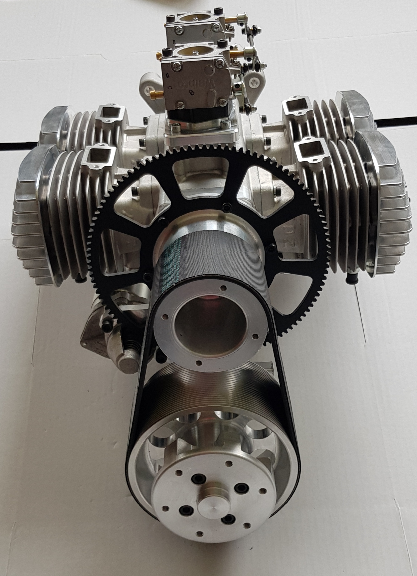 Already well known for its smooth run and awesome power to weight ratio two stroke 112ccm opposed twincylinder model gas engine with procesor controlled ignition. Now fully CNC made crankcase and backplate out of 7075 aluminium alloy so very clean design bringing better quality as well. Weight increased compared to former 112B2RV-J is only 50 grams.